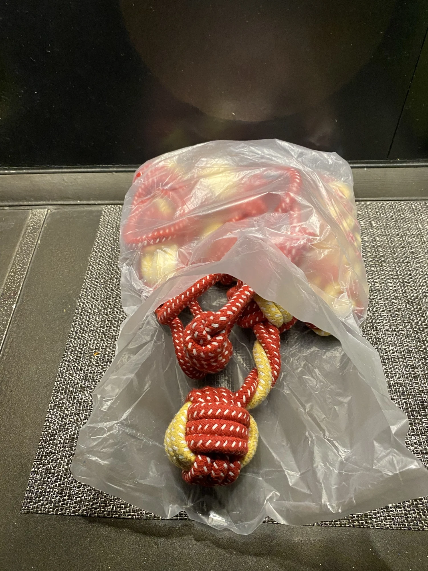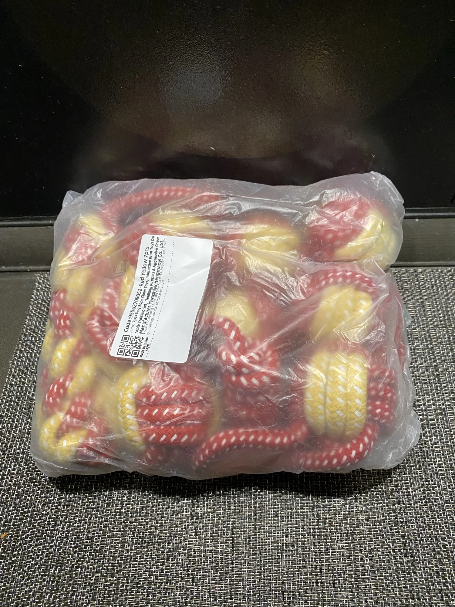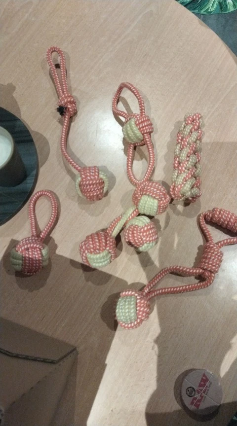 Leland B. Excellent rope toys. The material is great! The dog enjoys it! I recommend the store. Everything matches the description. The package arrived in 13 days in the Moscow region at the pickup point. Good luck and happy shopping!