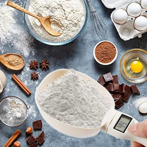 The bowl-shaped spoon head can accommodate larger containers, a comfortable handle, easy to hold and view measurement data.
